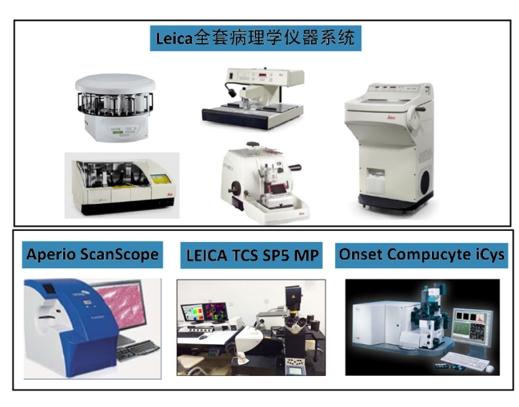 The Pathological and Physiological Research Platform supports sample preparation for high-quality imaging analysis of high-throughput, high-resolution data. A complete pathology instrument system from the German company Leica was introduced to the Experimental Center. This system can handle a large number of tissue samples, meets the various requirements for dealing with tissues of differing hardness for tissue slice preparation, automatically adjusts slice thickness in the range of 1–60 mm, and stains tissue sections with standard batch processing.